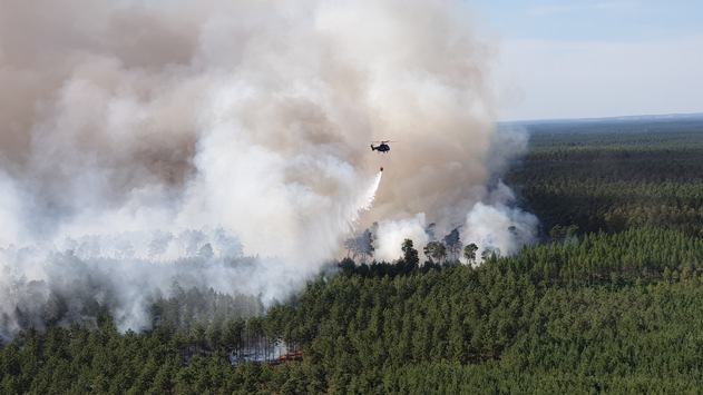 Brandenburg / Lieberoser Heide (ots) – Der Brandherd in der Lieberoser Heide hat sich seit gestern von 5 Hektar auf 100 Hektar erweitert. Aus diesem Grund setzt die Bundespolizei ab heute neben dem mittleren Transporthubschrauber "Super Puma" … Lesen Sie hier weiter…