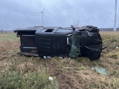 POL-HRO: Pick-up kommt von der Fahrbahn ab und überschlägt sich